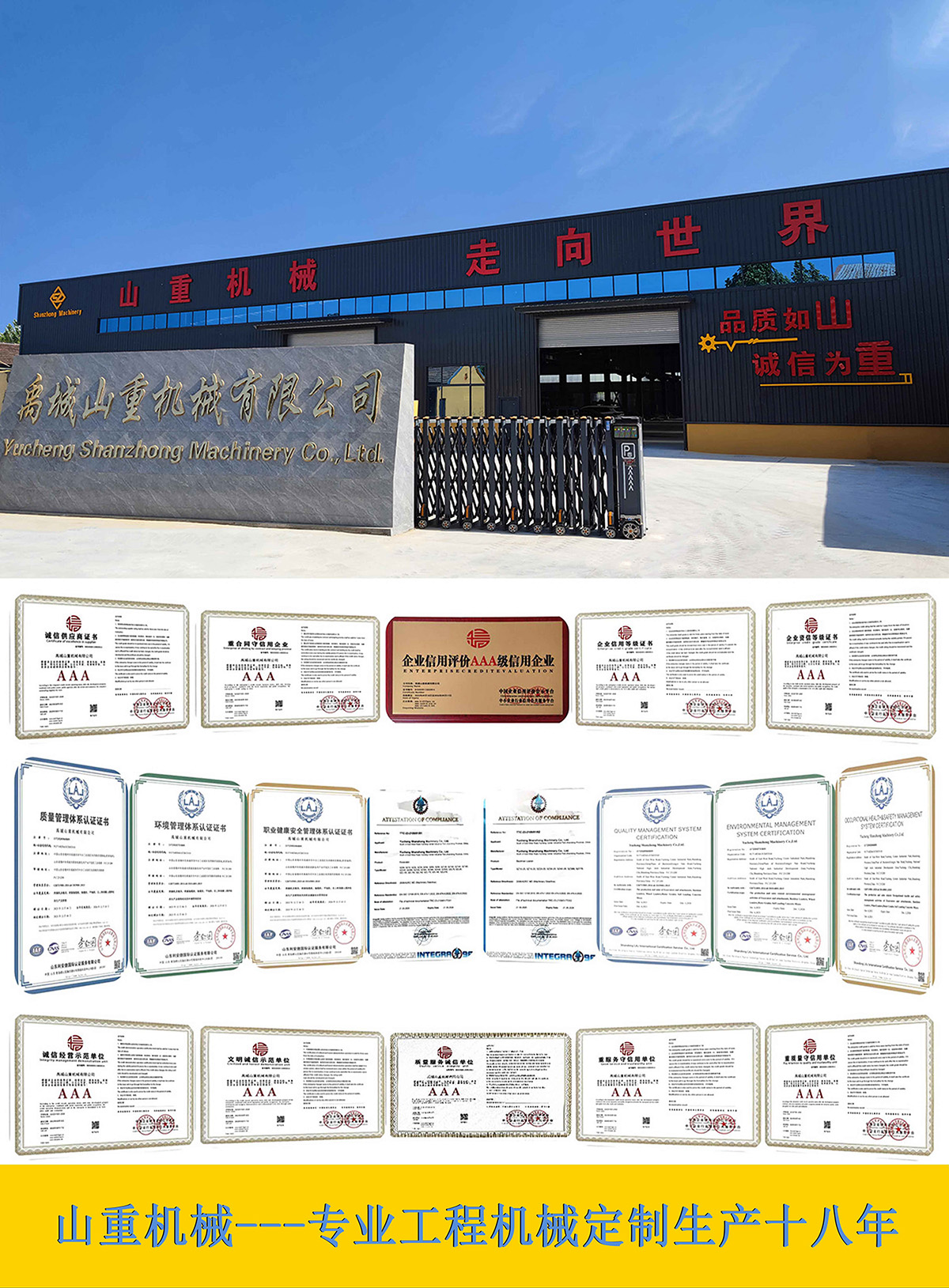 集團公司自2007年初成立至今,致力于工程機械專業定制化生產18年。其產品包含:輪式挖掘機(4-21噸),履帶挖掘機(1-50噸),以及各種型號配置的挖掘裝載機,裝載機等。滿足客戶或招標的特殊要求。我們始終秉持:創新,合作,共贏的經營理念,共同來做大做強國產工程機械行業。